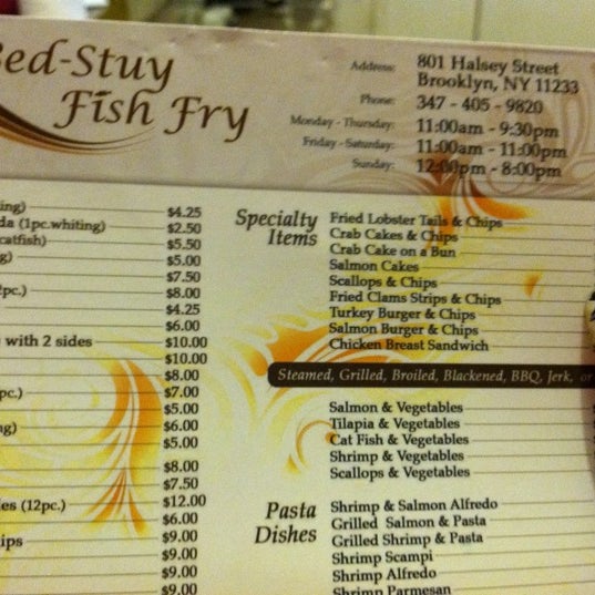 Menu At Bed Stuy Fish Fry Restaurant New York City 940 Fulton St