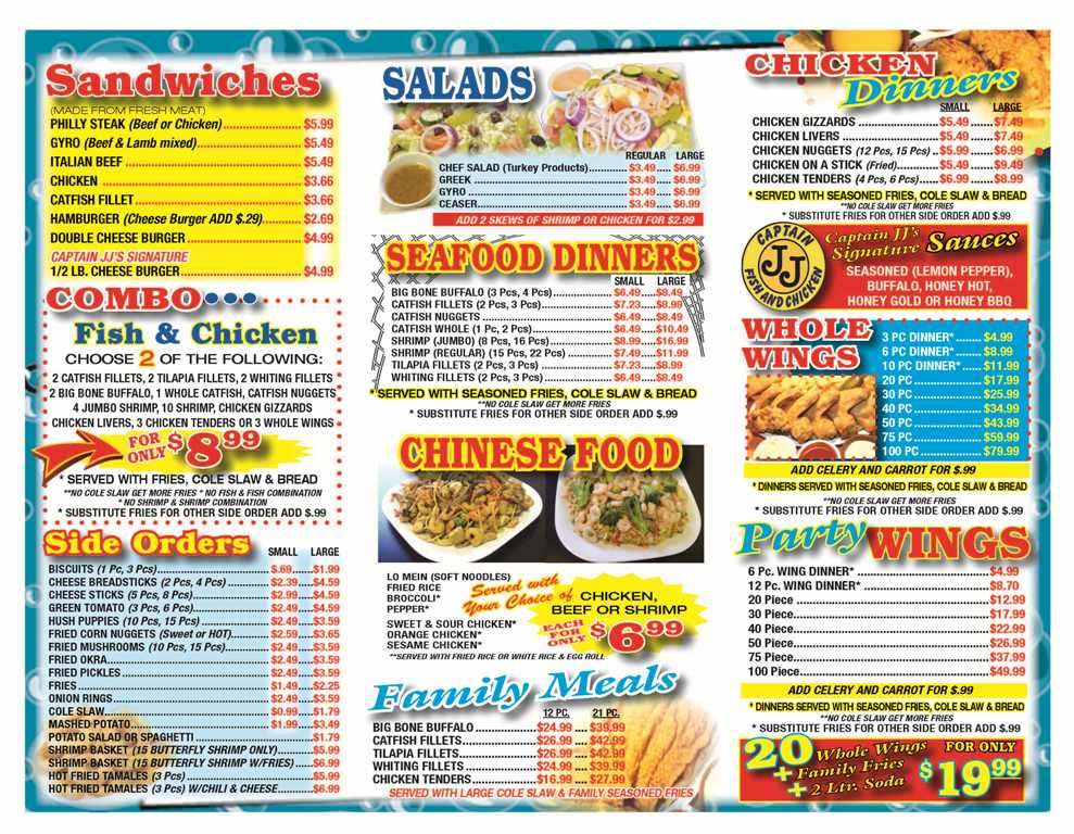 Captain Jj S Fish Chicken Menu