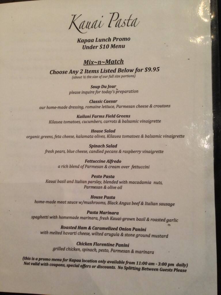 Menu At Kalena Fish Market Restaurant Lihue